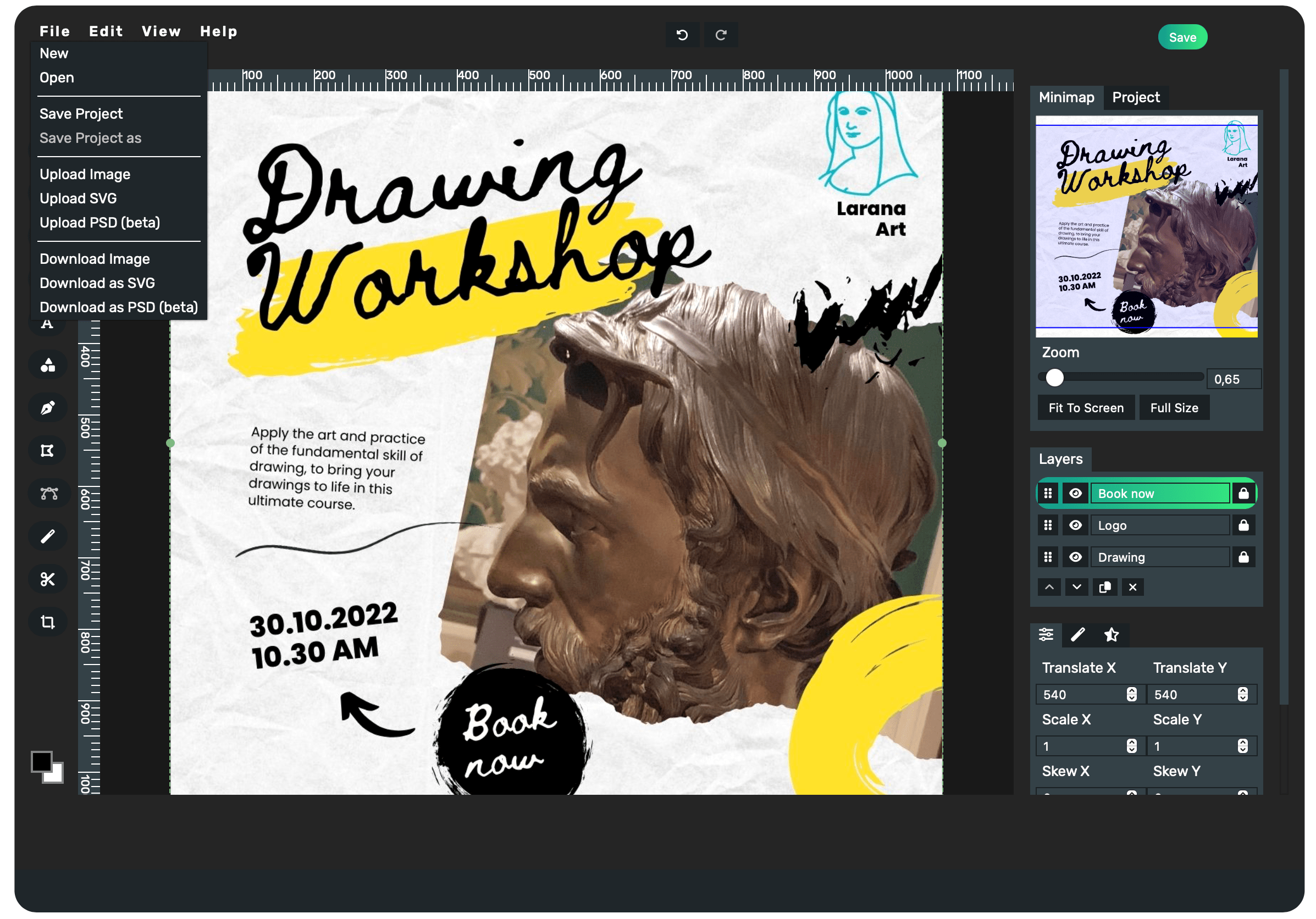 Volevamo un editor grafico che fosse veloce da aprire, facile da usare, non opprimente, senza installare nulla o pagare un abbonamento mensile.