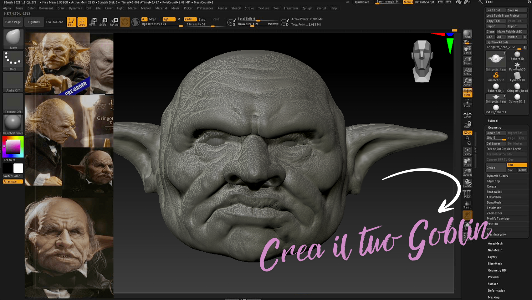 Impara a conoscere Zbrush e la scultura digitale, e sviluppa possibilità creative con la tua immaginazione come mai fatto prima, sia che tu voglia creare sculture per i videogames che per gli effetti speciali.
